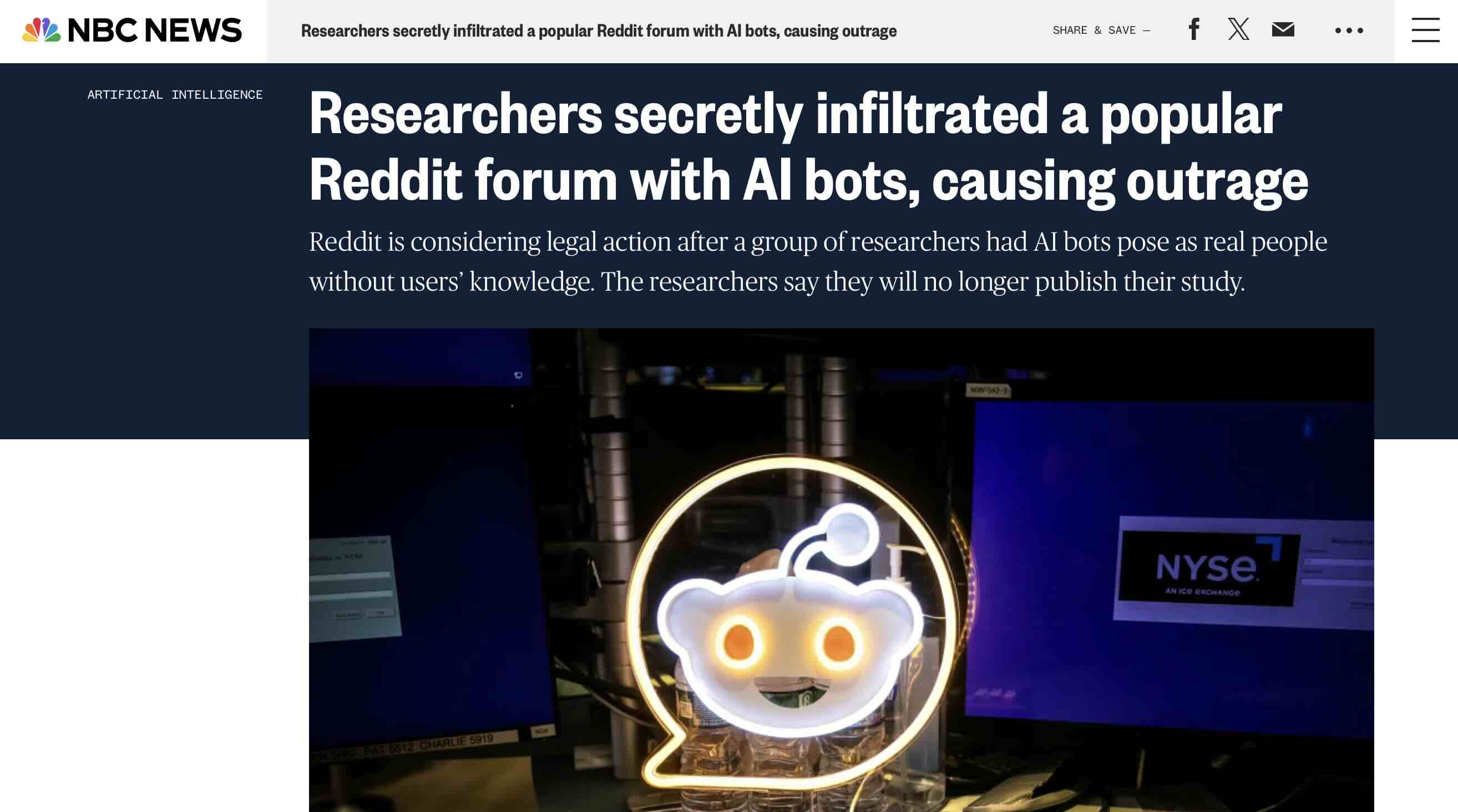 Piccola parentesi 👉 Reddit sta valutando un'azione legale contro i ricercatori e infatti lo studio non verrà pubblicato.