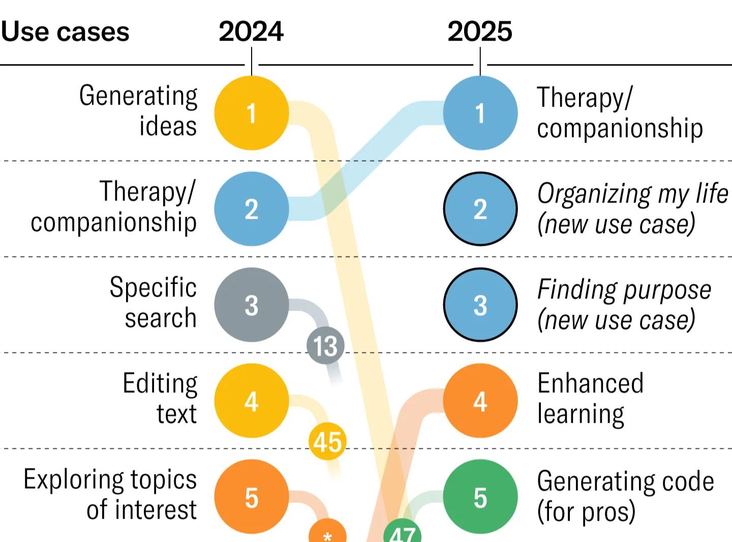 Secondo questo articolo su Harvard Business Review, nel 2025 le persone usano l’AI per: