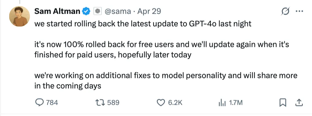 Ora, però, il problema si è risolto perché OpenAI ha ritirato l’aggiornamento.