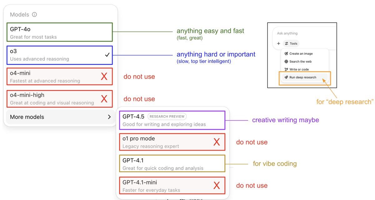 Quando l’ha pubblicata non era ancora uscito o3-pro, ma secondo me l’avrebbe inserito nella categoria “do not use”.