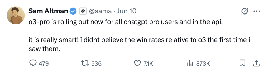La settimana scorsa, OpenAI ha rilasciato o3-pro. 🙌