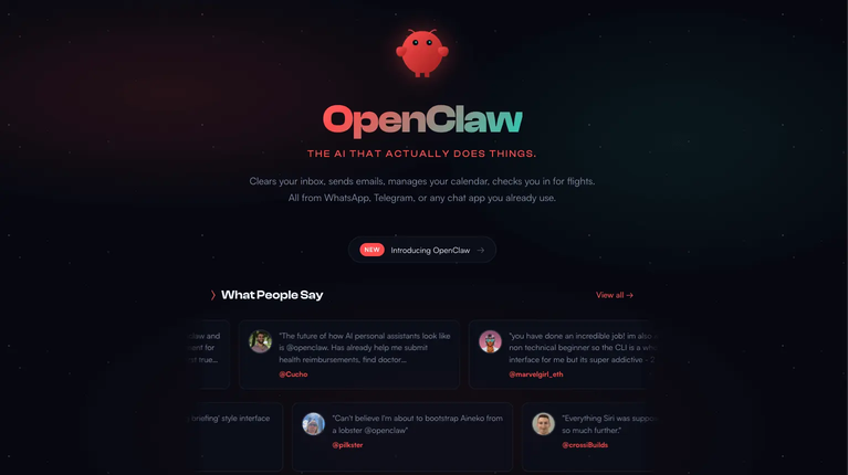 Su GitHub OpenClaw ha più di 100k stelle, sul sito viene raccontato come *“l’AI che fa veramente le cose”,* e su TikTok sembra Jarvis.