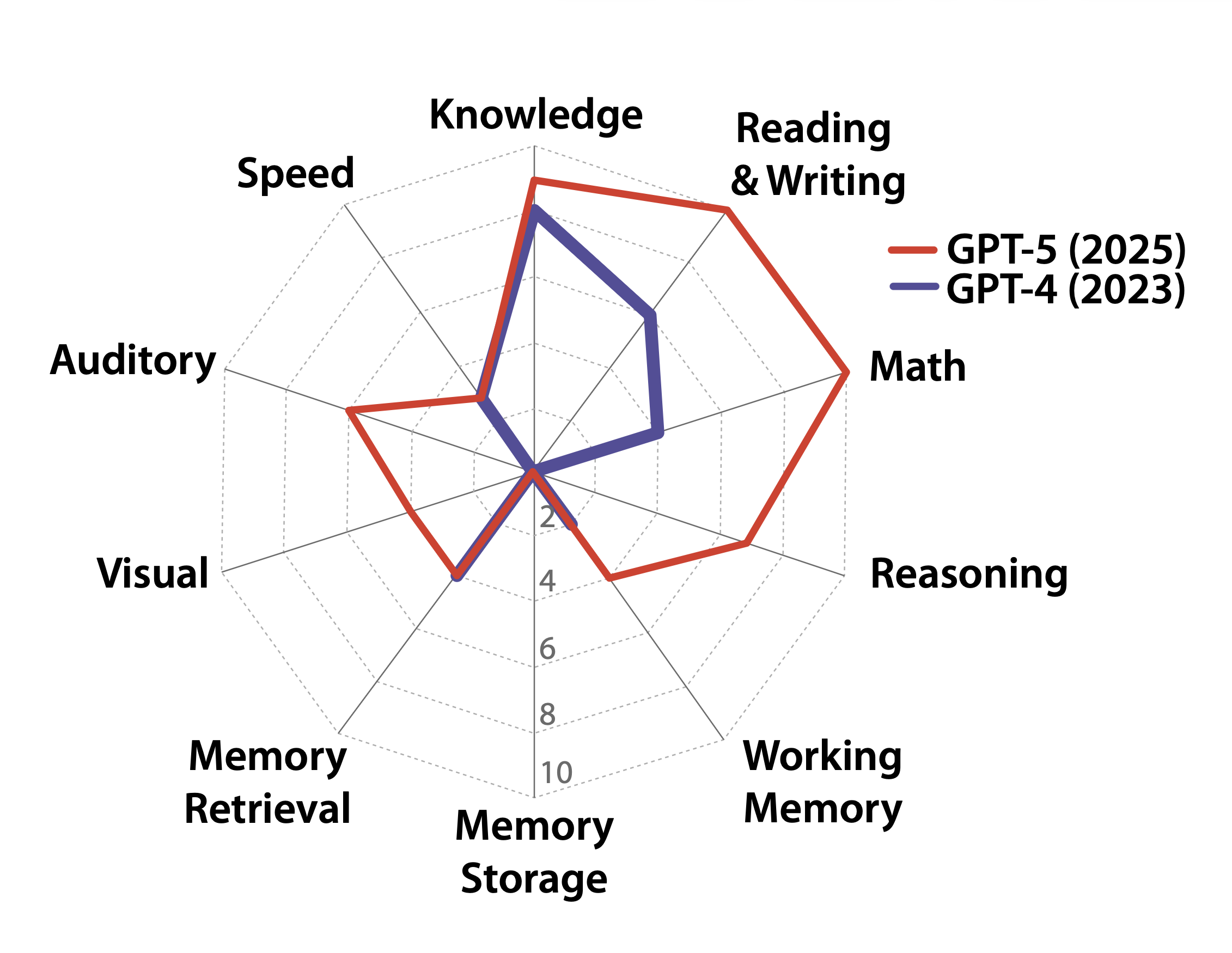 Applicano questa griglia ai modelli esistenti, come GPT-4 e GPT-5, assegnando un punteggio percentuale per ciascun dominio e un AGI Score totale su 100.