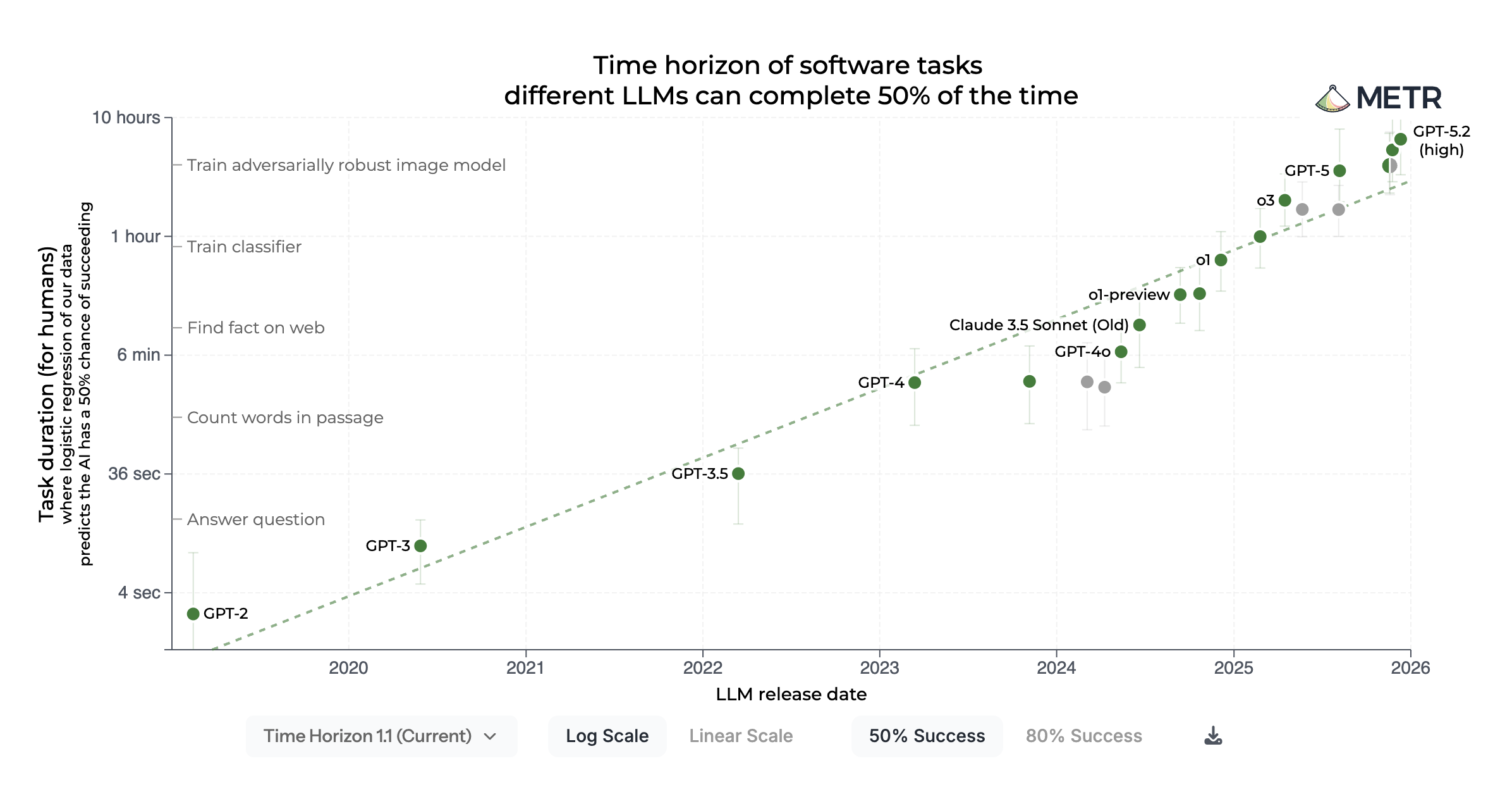 Cita i dati di METR, l'organizzazione che misura l'autonomia reale dei modelli su task del mondo reale: un anno fa erano dieci minuti, poi un'ora, poi cinque ore.