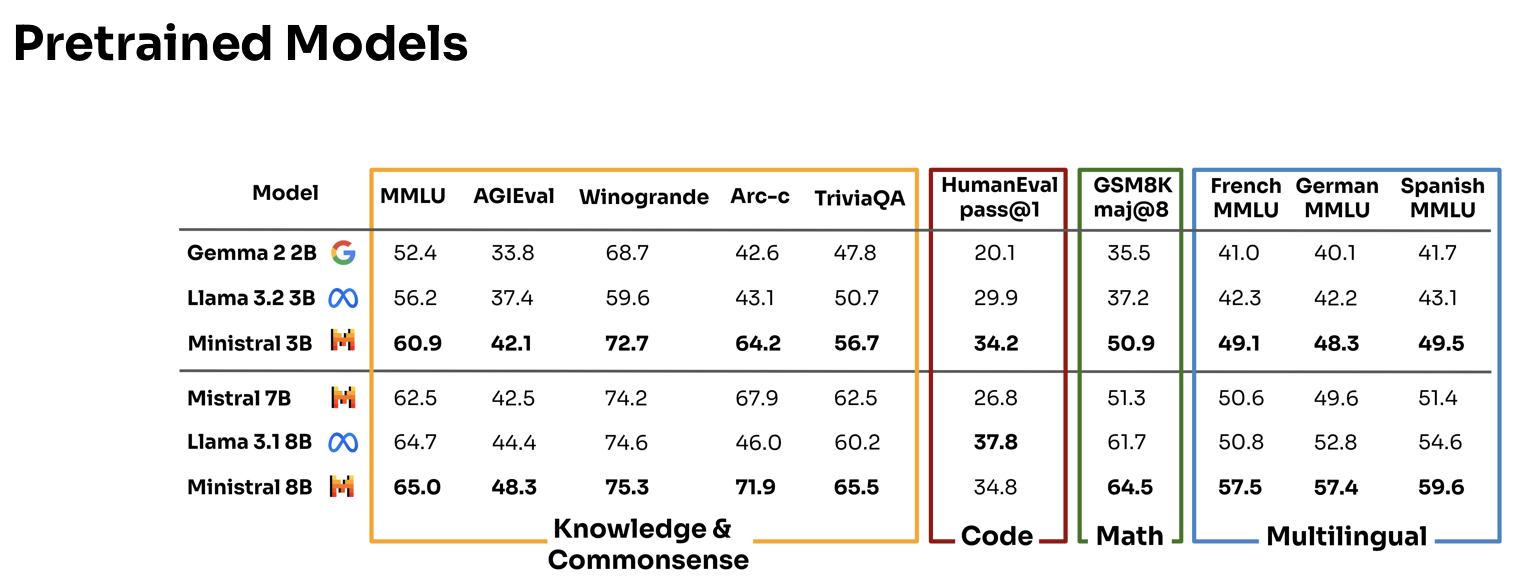 Nel primo anniversario del rilascio di *Mistral 7B* (il primo LLM tutto europeo), l'azienda ha presentato due nuovi modelli: Ministral 3B e Ministral 8B, soprannominati "Les Ministraux".